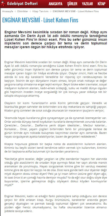 İstanbul doğumlu Lüset Kohen Fins, 1997-2009 yılları arasında yayınladığı City Plus Istanbul dergisinin ardından çalışmalarına Amerika'da devam etti. New York'ta NYC Food & Mood adlı yüksek tirajlı bir kültür-sanat dergisini hayata geçirdikten sonra Türkiye'nin yurt dışı tanıtımlarında aktif görev aldı.